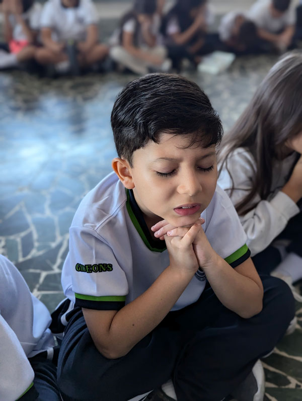 Todos los días al iniciar su mañana, cada grado tiene un tiempo de oración y devocional, con meditación de versículos Bíblicos y oran por las peticiones unos por otros. Esto con el propósito de inculcarles desde temprana edad ese hábito de exponerse a los medios de gracia que Dios nos ha dejado para estar cerca de Él.
